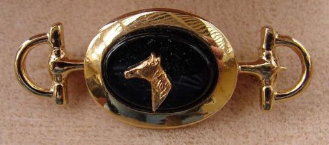 14K gold filled Pin. Gold Horse head on Onyx Stone. Gift Boxed. Approx. 1 1/2”w. x 5/8” h.