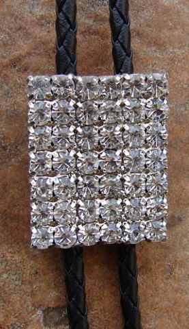 RECTANGULAR Shape Sparkling Rhinestone Bolo. approx. 1” w. x 1¼“ h.