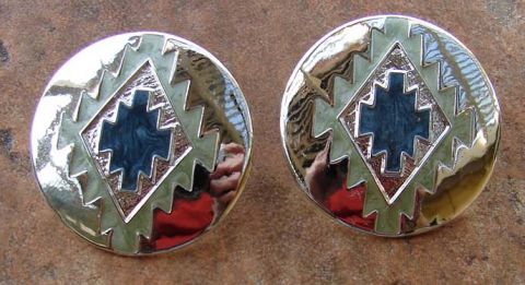Hand crafted, Enameled, Southwest Medicine Man Eye, Basket weave design, post earrings, of light & dark denim blue. Approx 1 ¼ ” diameter