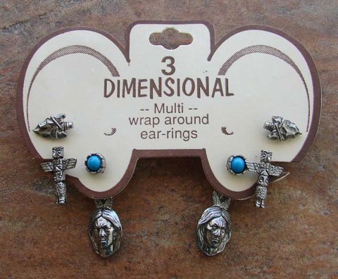 2 pair Post earrings. Antique Silver Indian head, Totem pole, with faux turquoise stone. Arrowheads separate.
