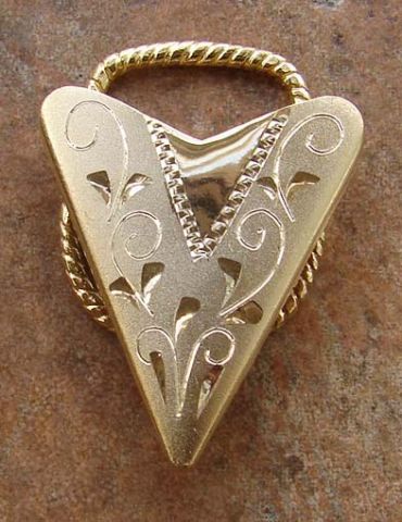 Gold Engraved “V” Scarf Holder. Approx. 1 ½” wide x 1 ¾" long. Matching Bolo and Collar tips available.