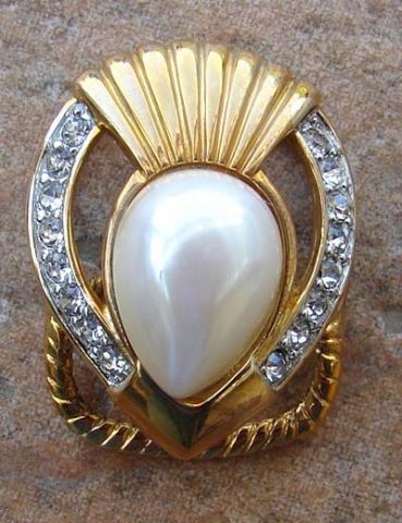 Gold Scarf Holder accented with Pearl and Rhinestones. Approx. 1 ¼ “ diameter