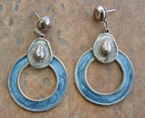 Western Hat Design Nickel Silver with Baked Enamel Blue Denim Color. Approx. 1 1/4" W. x 2 1/8" l.