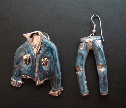 Handcrafted With choice of Blue Denim or Green Sparkle Enamel and Silver leaf Trim Designer Jeans & Jacket. Approx. Jacket Post Earring 1 1/4" wide x 1 1/2" l. , Pants approx. 3/4" wide by 2" l. dangle