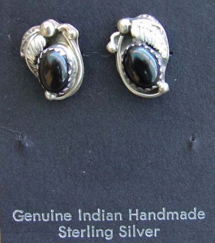 Engraved Sterling Silver with Onyx. Hand Crafted by Native Americans. Approx. 1/2" w. x 5/8" l.