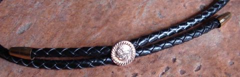 Leather Look Vinyl Black Hat Band With Gold Concho & Tips. Adjustable to fit all hats.