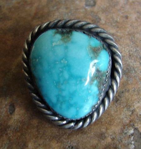Genuine Turquoise Stone Scarf Slide with Rope Edge Bezel, Tube Back. Approx. Size 1" x 1".  Photo is representation of stones available. Each natural stone will vary.