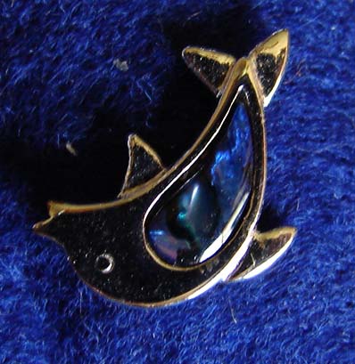 Small Silver Dolphin with Blue Paua Shell. Approx. 5/8" wide x 1/2" wide