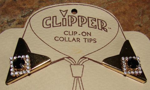 Gold with large Black rhinestone surrounded by clear rhinestones, clip-on collar tips