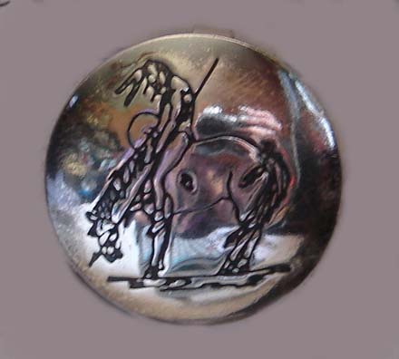 Sterling silver "End-of-Trail" design Button Cover.  Approx. 3/4" diameter