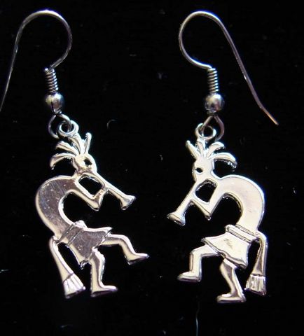 Sterling Silver Kokapelli dangle Earrings. Approx. 5/8" wide x 1 1/2" dangle