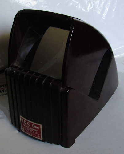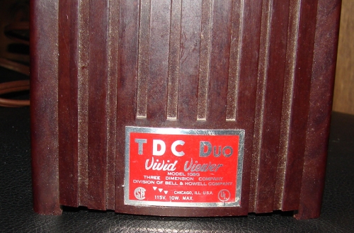 Art Deco Bakelite TDC Duo - Vivid Viewer Model 108G, 115 Volt 10 Watt max. Division of Bell & Howell. This item is in very good condition, screen size is 3" inch by 3" inch. The screen is not flat but more rounded. Working Condition. Metal Plate Reads: TDC Duo - Vivid Viewer - THREE DIMENSION COMPANY - CHICAGO. Approx. 7" h x 4 1/2" w x 7 1/4" d.