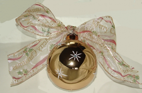 Beautifully hand painted Angel Christmas Ornament. Embellished with Rhinestones and large Bow. 4" diameter Large size ornament