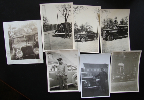 20 Assorted Staff Car photos of the 102nd Infantry Division, 405th Regiment in Bayreuth Germany 1945. Approx. size of each photo 3 1/2" wide x 2 1/4" high.. Identifiable cars: Audi, Mercedes, Dodge, Moskvitch.