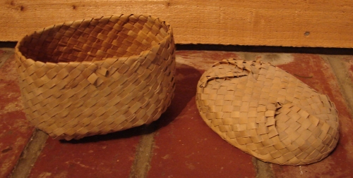 Small Woven Oval Basket with Lid. Approx. 5 1/2" long x 4" wide x 3 1/2" high with lid