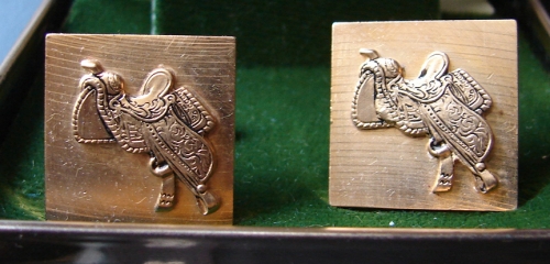 Western Saddle Cufflink Set, each link measures 7/8" square, Gift Boxed