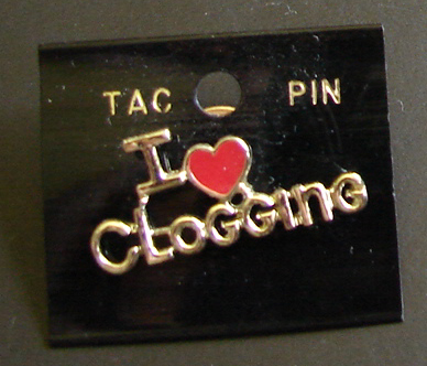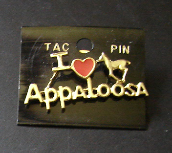 I (heart) - Choice of "Thoroughbreds", " Haflingers", "Appaloosa", or "Clogging", Tac Pins. Approx. 1 1/2" wide. Gold with red heart accent.