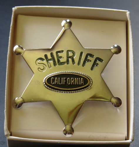 California Sheriff Star Badge, choice of Gold or Silver. 2 3/8" wide x 2 3/4" high