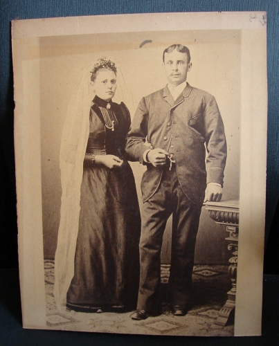 Large vintage CDV Wedding Photo - Circa early 1870's,  Approx. 11" wide x 14" long. Break on photo board upper right hand corner.