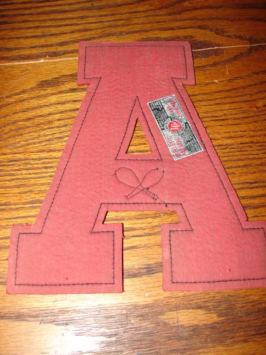 Wool High School Sports Letter for Tennis, circa 1930's, Burgundy and Black "A" approx. 6 3/4" at widest point, 7 3/4" long