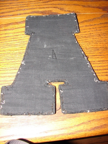Wool High School Letter, circa 1930's, Burgundy and Black "A" approx. 7 1/4" at widest point, 8 1/4" long