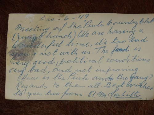 Post Card of Natives, circa 1940's.  Has been used and has interesting note on back from sender stating food is good, politics are bad. Dated Dec. 6, 1949.
